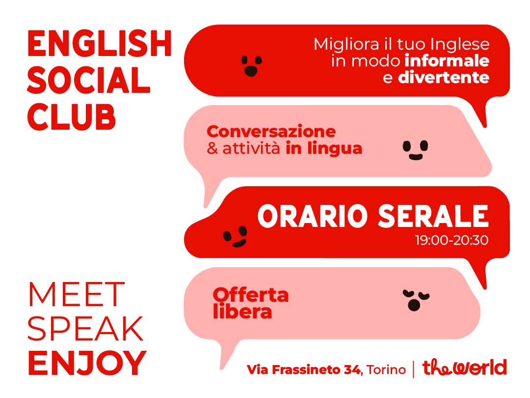 Vuoi migliorare il tuo inglese e conoscere nuovi amici in un ambiente rilassato? Vieni a passare una serata con noi all’English Social Club!